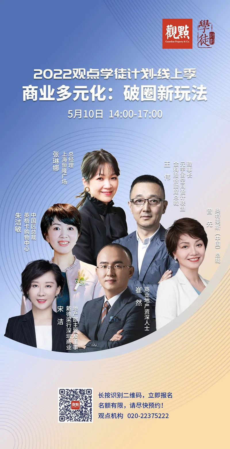 5月10日,由觀點機構主辦的“2022觀點學徒計劃-線上季”線上專題討論會成功舉辦,本期討論主題為“商業(yè)多元化:破圈新玩法”。奧特萊斯(中國)總裁受邀參加本次專題討論會,并作了以“一站式生活目的地——奧特萊斯思考及實踐”為主題的分享。