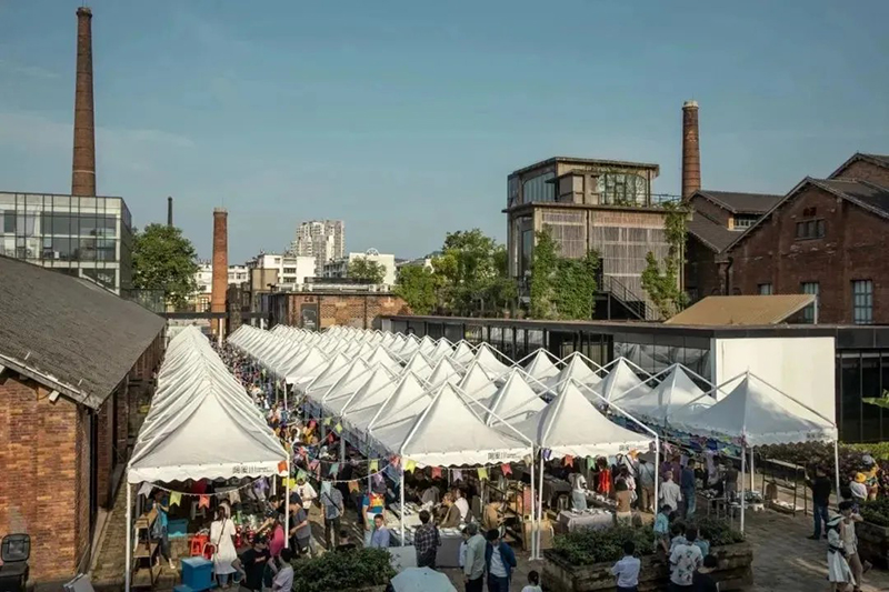 邑空間利用上世紀50年代老廠房改建,約3000平米,近百個鋪位,定期從國內(nèi)外雙創(chuàng)青年和陶溪川創(chuàng)意集市中精選有代表性的大學生入駐。