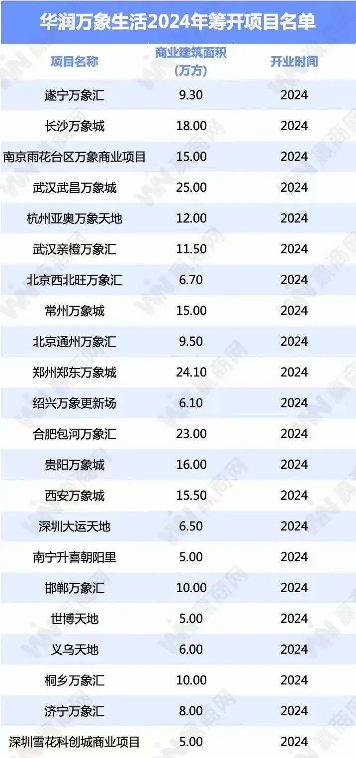 2023年華潤萬象生活以“萬象”系列為核心,在全國范圍內(nèi)迅速拓展其商業(yè)帝國,成功開設(shè)13座全新購物中心。展望今年,華潤再啟新程,計(jì)劃推出22個(gè)引人注目的新項(xiàng)目,持續(xù)加速商業(yè)版圖的擴(kuò)張步伐。