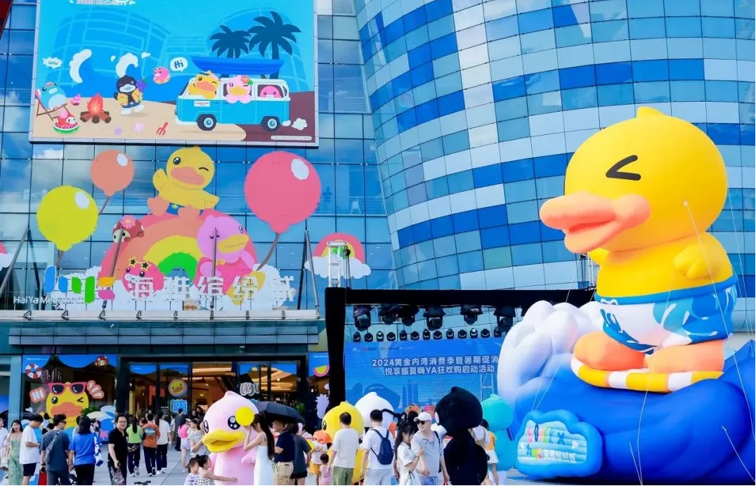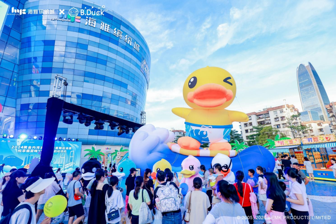 時(shí)值暑期,深圳海雅繽紛城邀請(qǐng)B.Duck品牌創(chuàng)辦人“鴨爸爸”許夏林,以及市/區(qū)商務(wù)局、中山商務(wù)局、新安街道辦、市零售商業(yè)行業(yè)協(xié)會(huì)等官方代表,共同開啟了2024黃金內(nèi)灣消費(fèi)季暨暑期促消費(fèi)——悅享盛夏嗨Ya狂歡購系列活動(dòng)的序幕,成功完成中國第一自主IP B.DUCK小黃鴨的“B.DUCK嗨YA狂歡節(jié)全國首展”。