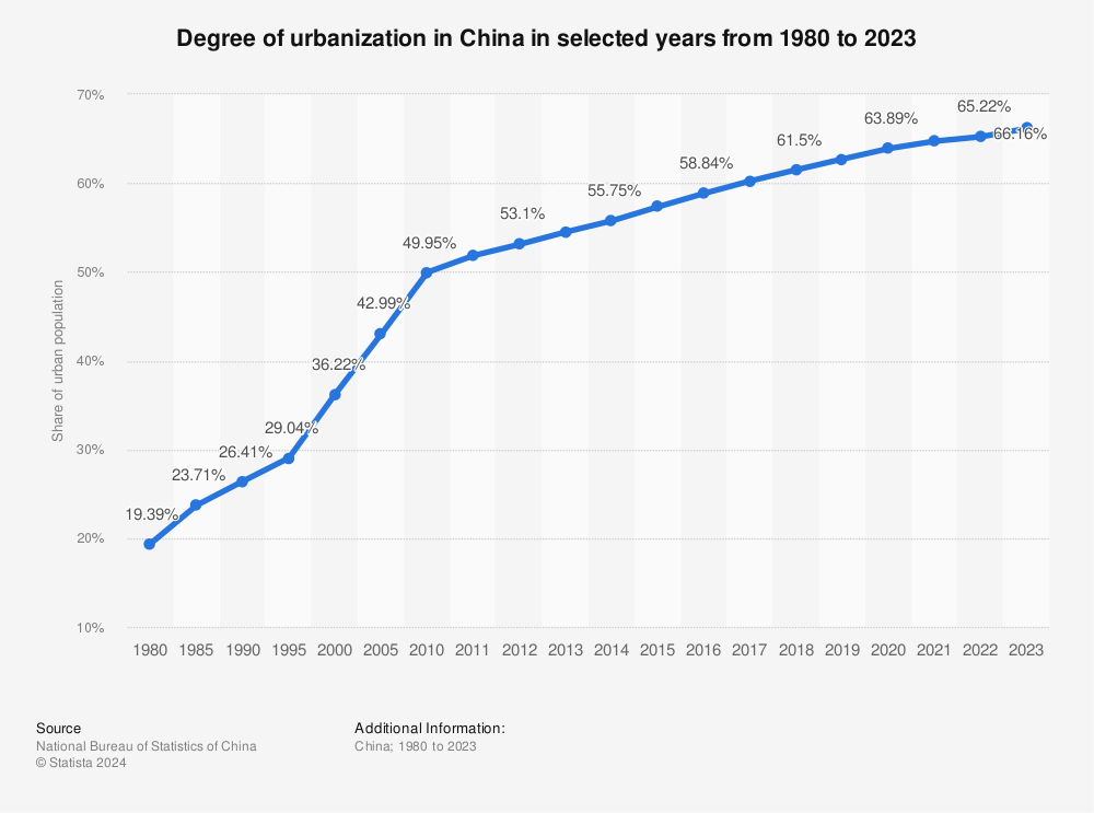 報告中顯示,2023年末,我國城鎮(zhèn)常住人口已經達到了9.3億,城鎮(zhèn)化率66.16%,即,每三個中國人中,有兩個生活在城市里。此外,我國地級以上城市常住人口達到6.7億人,常住人口超過500萬的城市有29個。