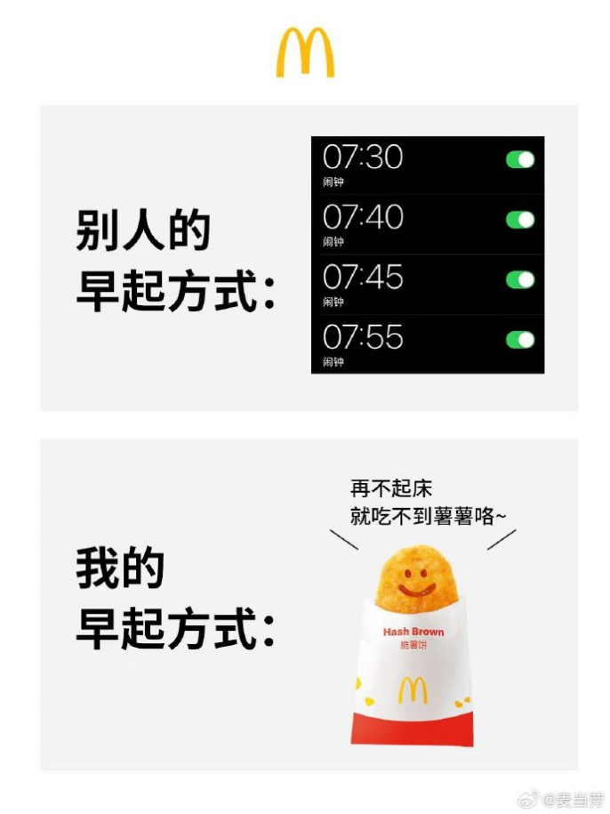 對于此,麥當(dāng)勞也抓住了自帶共鳴的打工人群體,畢竟各大寫字樓附近,總會有麥麥的身影,在北京更是被戲稱為“老北京的傳統(tǒng)美食”。
