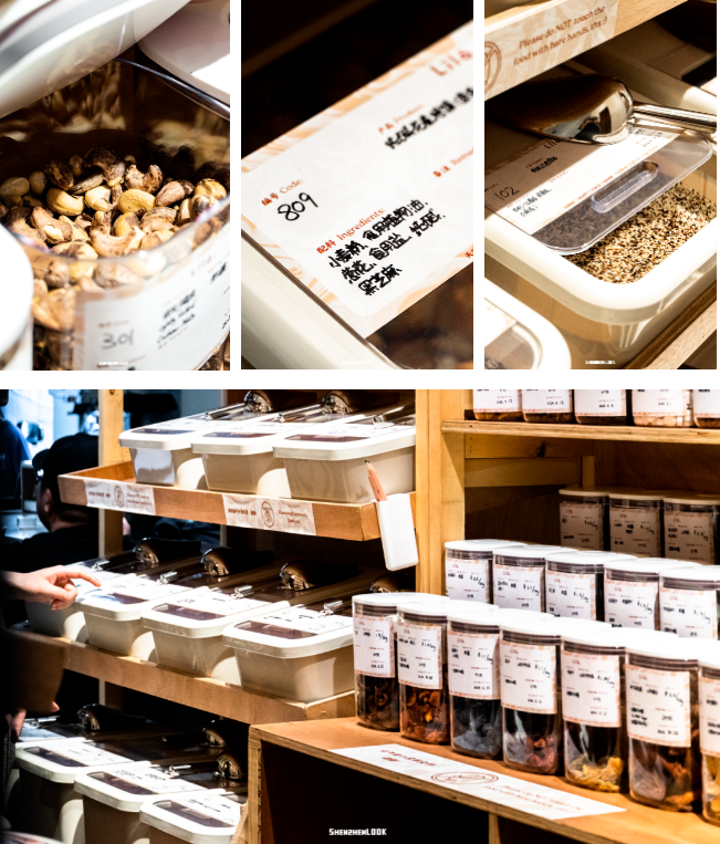 品牌整體適合喜歡搗鼓酸奶碗這類輕食的消費(fèi)者,品類多,逛一次基本就能把材料買齊。從店名也能看出,Lila推崇零浪費(fèi)、減碳等環(huán)保理念,因此來這里購(gòu)物,是需要自帶容器。按需取量,稱重結(jié)算。