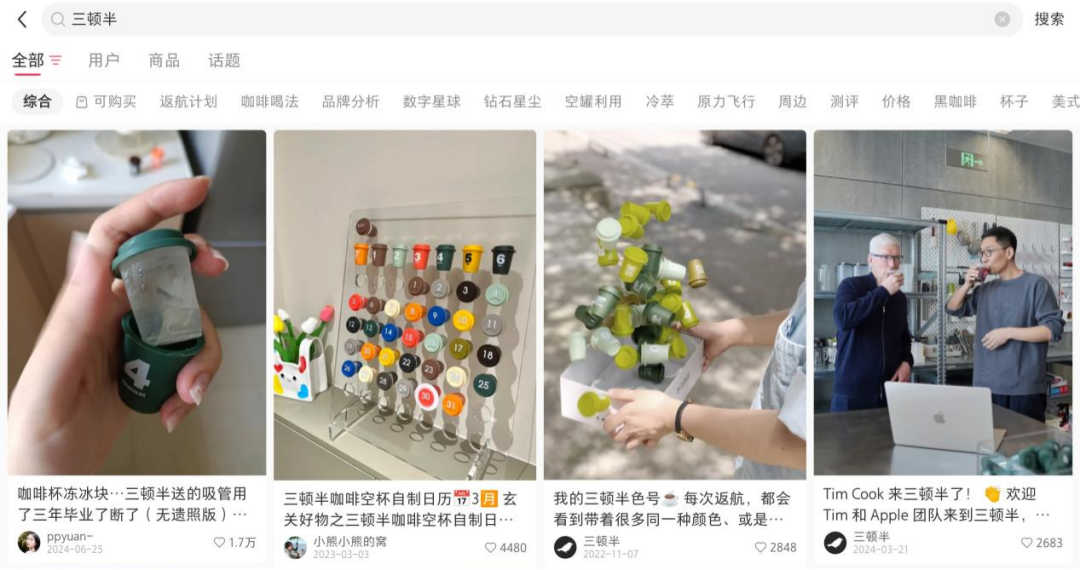 三頓半作為咖啡領域的創(chuàng)新先鋒,其憑借獨特的小罐咖啡形式,曾在小紅書上掀起了一股咖啡熱潮。眾多美食和飲料主播使用三頓半推出各種創(chuàng)意的咖啡沖泡教程和咖啡與美食搭配的內容,如咖啡拿鐵、摩卡星冰樂等,為用戶展示了咖啡的無限可能性。消費者也積極響應,在小紅書上分享自己獨特的“三頓半空罐創(chuàng)意玩法”,將空罐制作成各種精美的手工飾品,展現了他們對生活的小巧思和對品牌的熱愛。此外,三頓半還精心策劃了豐富的營銷活動,例如“返航計劃”,該活動鼓勵用戶收集咖啡空罐,并前往指定地點兌換周邊產品或參與線下活動。這不僅有效提高了用戶的參與感,還極大地增強了品牌忠誠度。