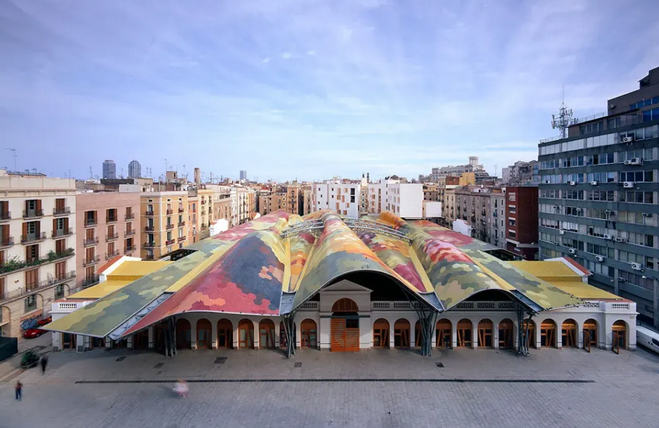 在改造過程中,設(shè)計(jì)師充分尊重市場的歷史和傳統(tǒng),保留了原有的建筑結(jié)構(gòu)和部分古老的攤位設(shè)施。同時(shí),引入了現(xiàn)代化的設(shè)計(jì)理念,如采用新型建筑材料、優(yōu)化空間布局、增加環(huán)保設(shè)施等,使市場既具有歷史底蘊(yùn),又充滿現(xiàn)代活力。如,波浪形的彩色屋頂,由不同顏色的陶瓷碎片拼接而成,宛如一幅巨大的抽象畫,為市場增添了獨(dú)特的藝術(shù)氛圍。